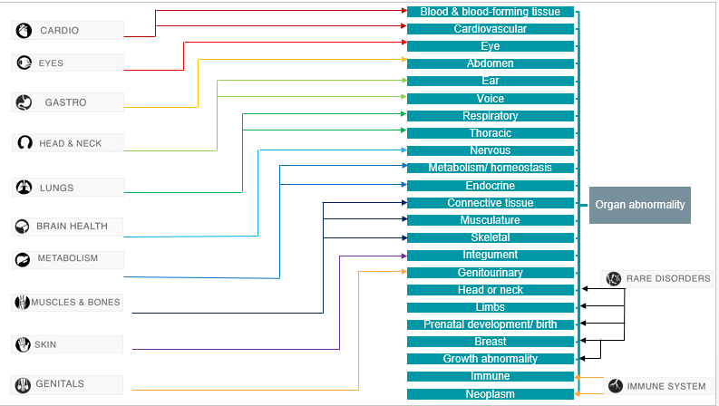 I) Mapping the Human Phenotype Ontology to the categories for the Prototype buttons. Categories were refined with input from lay users.