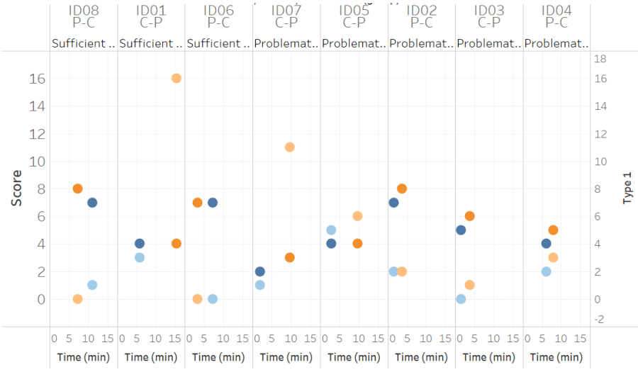 Score & False Positives vs time spent using the interfaces