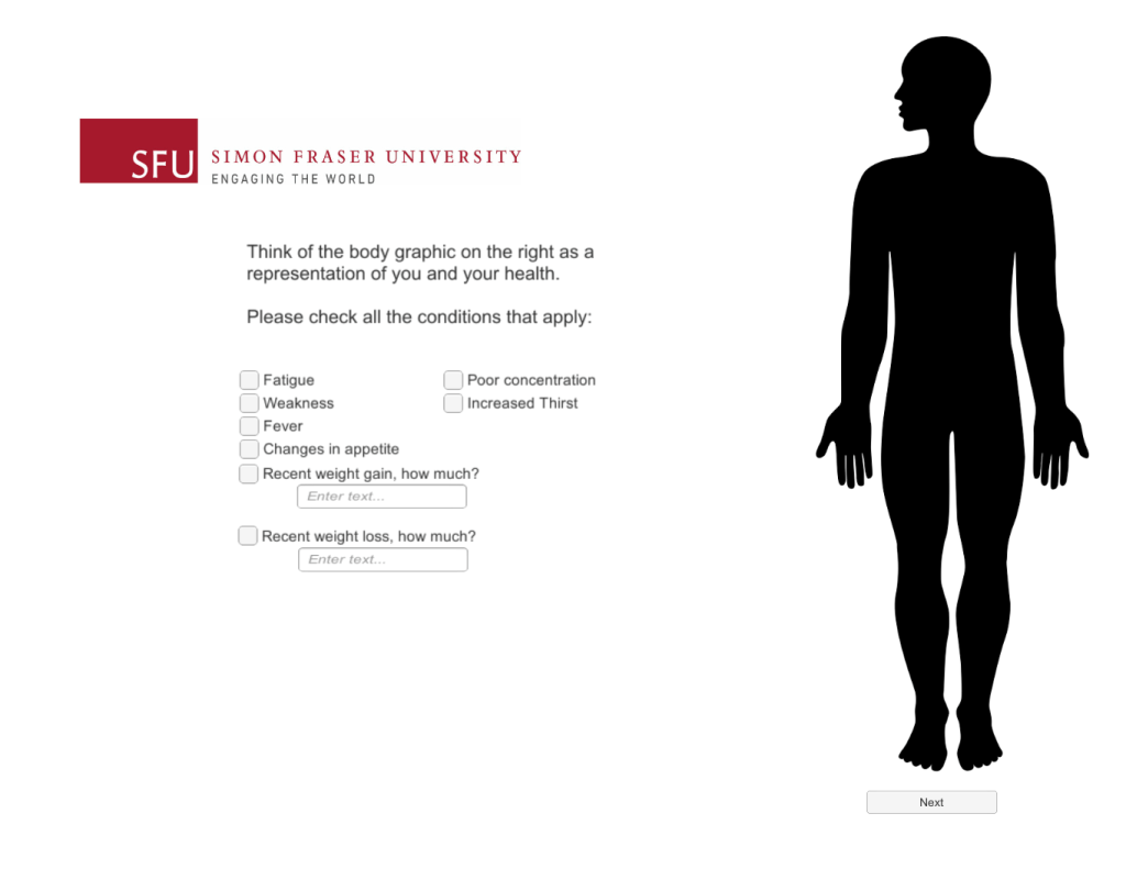 III) Prototype: Introduction Scene where the user reports symptoms + gets introduced to the somatic representation